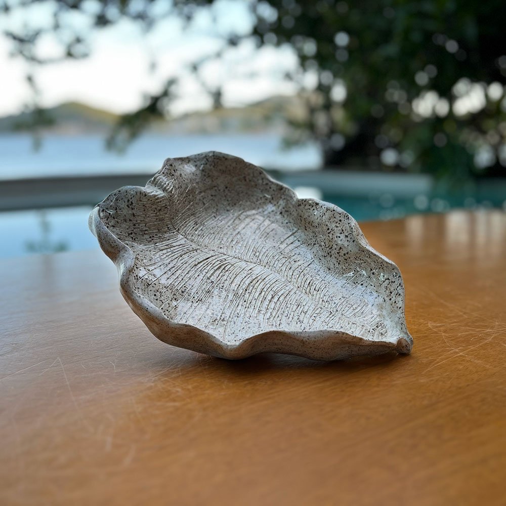 Centro de Mesa de Cerâmica em Formato de Folha Bege