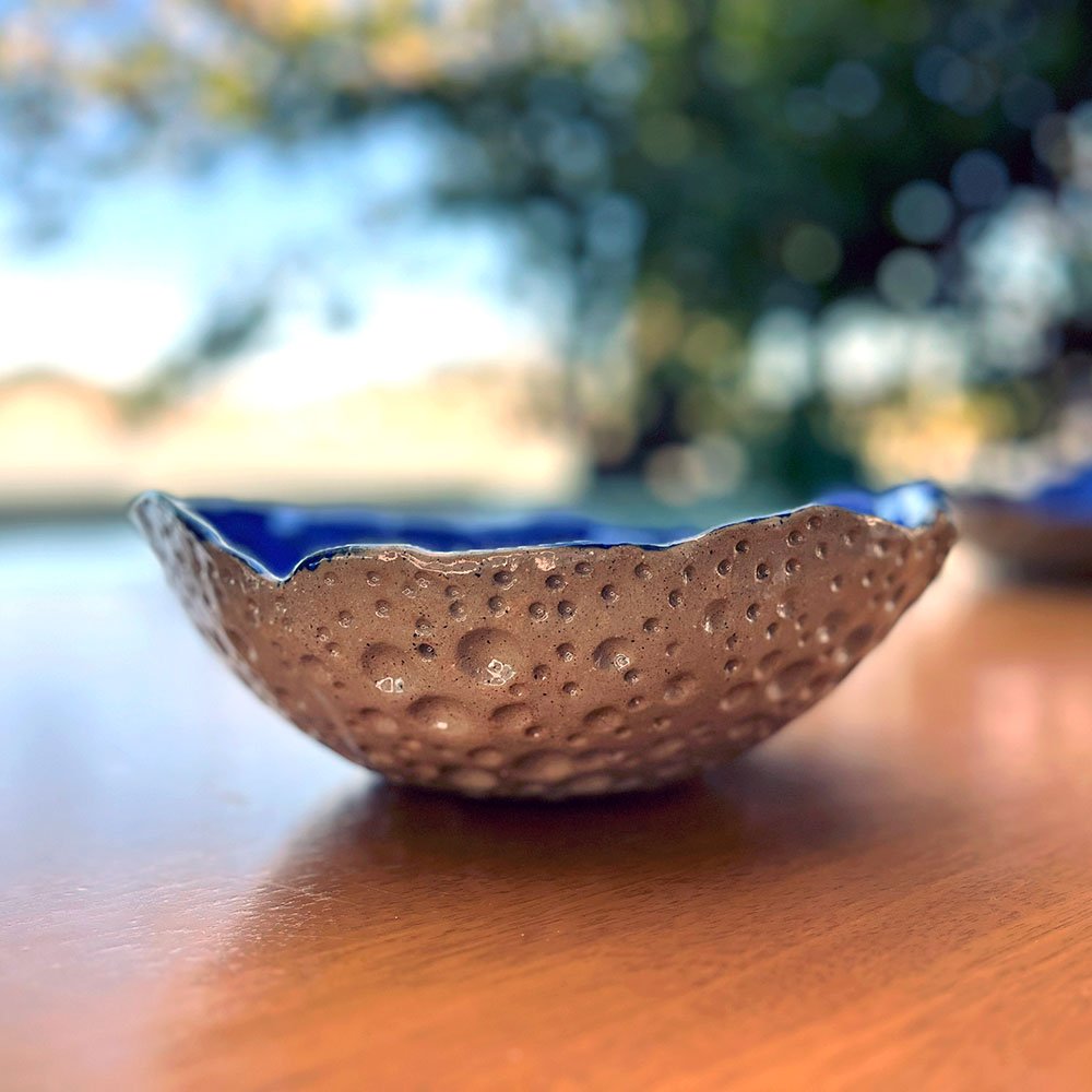 Este bowl é uma cratera de cerâmica que guarda em seu interior a profundidade hipnótica dos oceanos, criando um contraste sublime entre a robustez da terra externa e a fluidez da água interna. Nascida da filosofia da “dança ancestral entre a Água e o Barro”, a peça evoca a força dos elementos primordiais, transformando a matéria bruta em uma obra de arte que respira identidade. É uma peça com alma, feita para ser um legado na decoração, representando a segurança do solo firme que protege a vastidão misteriosa e vibrante do azul profundo. Ter esta obra é convidar a natureza em sua forma mais potente e poética para habitar o centro do seu lar.