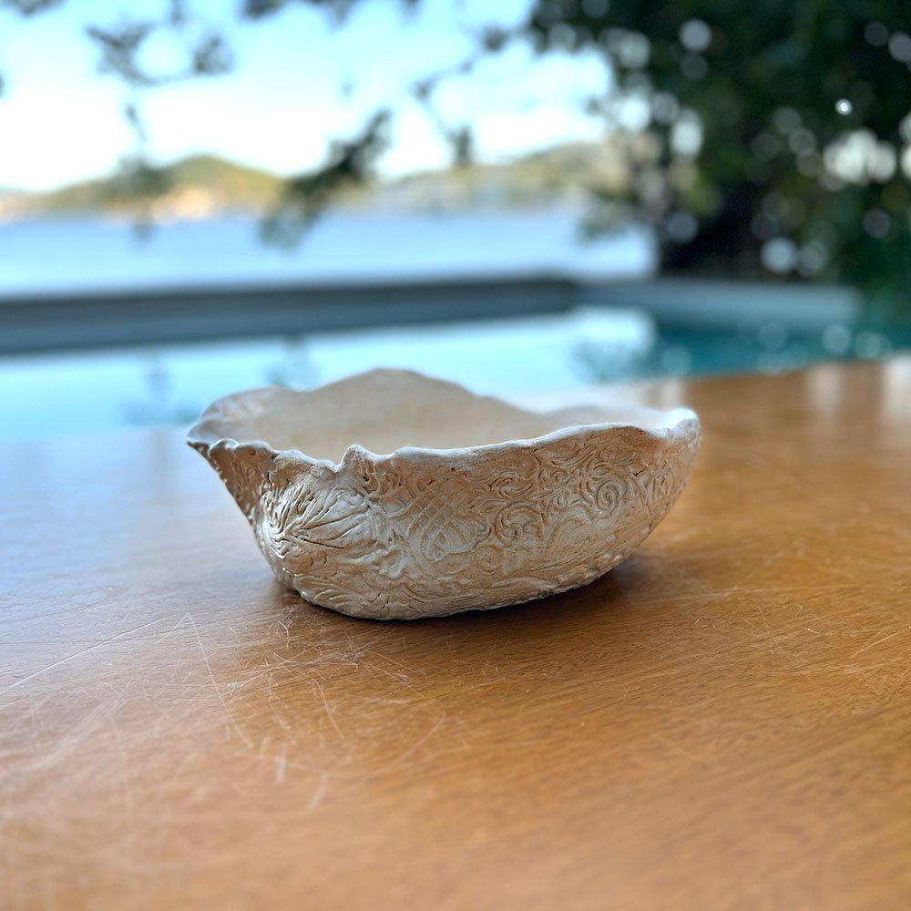 Esta peça é a narrativa da memória impressa na matéria. O Bowl de Cerâmica com Textura em Relevo Bege evoca a delicadeza de tramas antigas ou a erosão artística das rochas sedimentares. A filosofia do Studio Vil Batista de “dar alma ao barro” manifesta-se aqui na dualidade: o interior liso e acolhedor para o alimento, e o exterior rugoso e detalhado para as mãos. É uma peça que pede para ser segurada, transmitindo a história do processo artesanal e a energia da terra em cada centímetro de sua superfície.