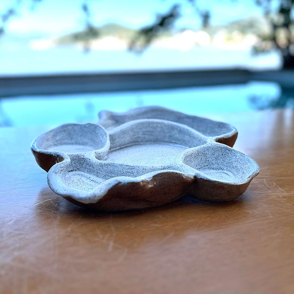 Esta peça é um manifesto sobre a “liberdade de ser você mesmo”. Fugindo dos padrões industriais simétricos, a Petisqueira Orgânica possui um design que flui como água, criando compartimentos suaves e naturais. Ela simboliza a quebra de expectativas, convidando a uma vida mais leve e espontânea. A “dança entre a água e o barro” aqui se cristaliza em uma forma que acolhe, seja o alimento ou seus pertences mais queridos, com uma elegância despretensiosa e cheia de alma.