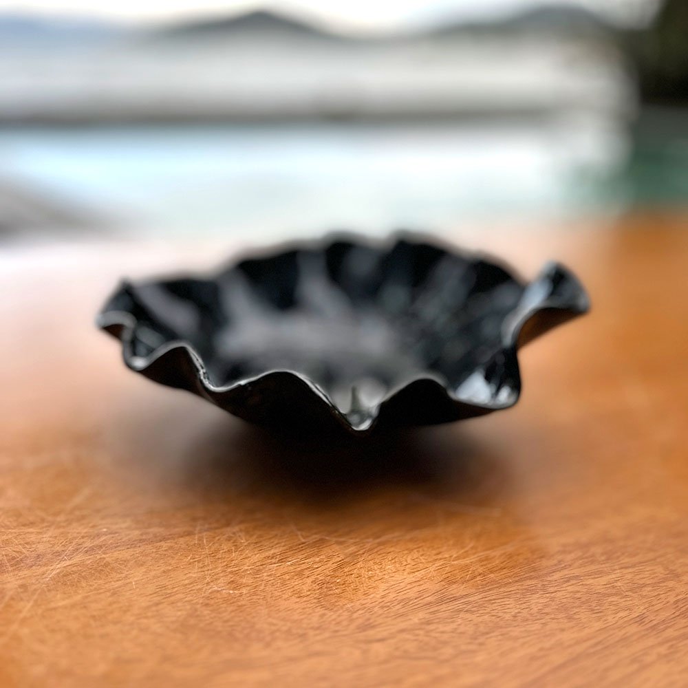Esta obra é uma janela aberta para o mistério e a serenidade das marés noturnas. O Centro de Mesa com Borda Orgânica Preto foi esculpido para captar a essência de um mar preto e profundo, funcionando como uma moldura eterna de um momento de observação silenciosa diante do horizonte. A peça evoca a imagem da espuma das ondas derramando-se em si mesma, transformando a “dança ancestral entre a Água e o Barro” em uma forma física que transborda alma. É um objeto que carrega a força do oceano e a sofisticação do design autoral, ideal para quem busca uma peça que seja, ao mesmo tempo, uma afirmação de identidade e um legado de beleza no ambiente.
